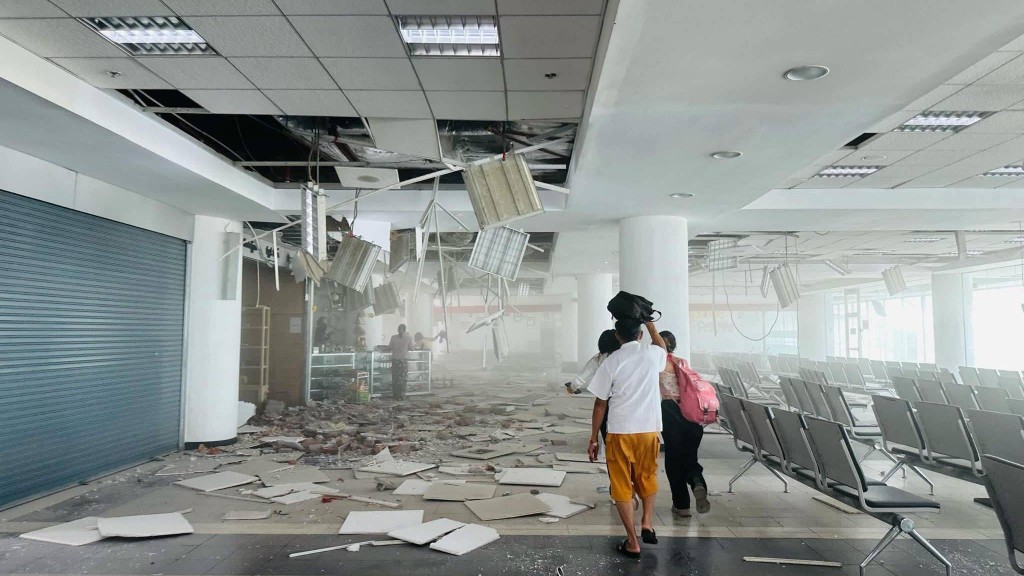 ▲缅甸曼德勒机场天花板坍塌。x.com@sentdefender