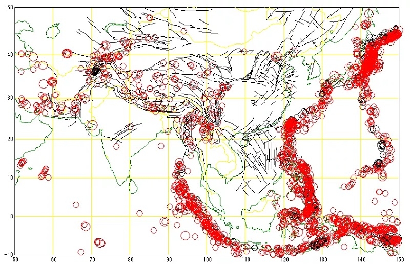 1900年以来,本次缅甸7.9级地震震中附近300公里范围内共发生7级以上地震10次,最大为1912年5月23日缅甸境内的8级地震。