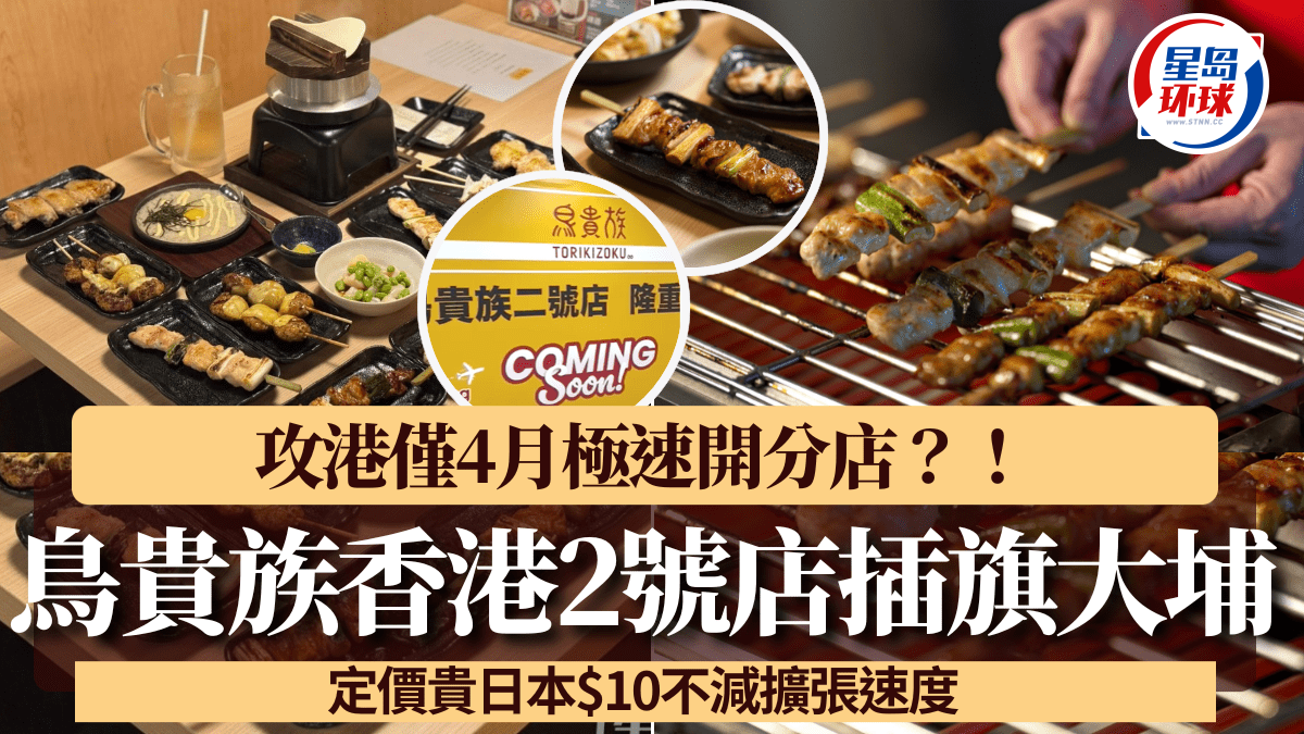 日本著名连锁串烧居酒屋“鸟贵族”于去年12月正式登陆香港,首店选址屯门市广场,虽然香港定价比日本当地贵约港币$10,但仍吸引不少食客慕名前往光顾,开幕短短4个月更宣布开设2号店,选址大埔超级城,各位大埔街坊有口福!