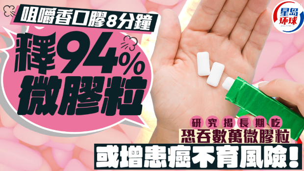 不少人日常都爱吃口香糖提神,不过有研究发现只需咀嚼口香糖短短8分钟,口香糖就会释出94%微胶粒。如长期进食口香糖,身体恐摄取数万微胶粒。过去曾有研究指,如身体吸收过量微胶粒,或增患癌及不育风险!