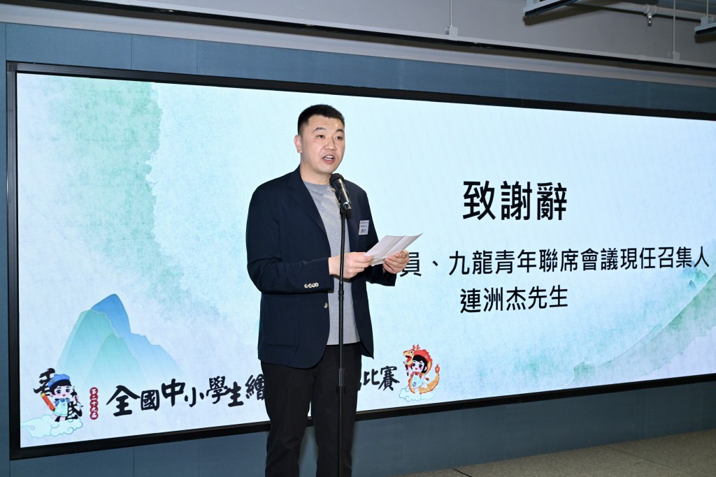 九龙青年联席会议召集人连洲杰致辞时表示,九龙青年联席会议将全力办好本次赛事,让香港的孩子们有机会在国家级的赛事里尽情挥洒创意,追逐梦想。同时感谢民青局、教育局、文体旅局及公民教育委员会的大力支持,令此全国性比赛可以在香港生根发芽,开花结果。