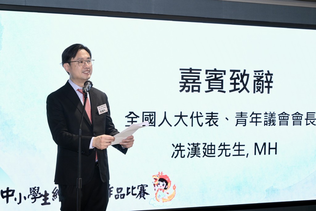 港区全国人大代表冼汉廸致辞时表示,全国两会中,感受到国家的一日千里飞速发展,在人工智能普及的今时今日,人文培养、文化传承、人类精神世界的探索就更显珍贵。他续指绘画与书法一直是中华文化的瑰宝,不仅能够培养人们的创造力与审美能力,更是传承民族精神的重要桥梁。比赛展现香港青年一代的创意、创新和创造,意义非凡。