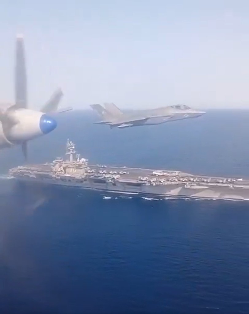 ▲俄方视觉俄美军机并肩飞行,卡尔文森号在下方出现。 X / Archer83Able