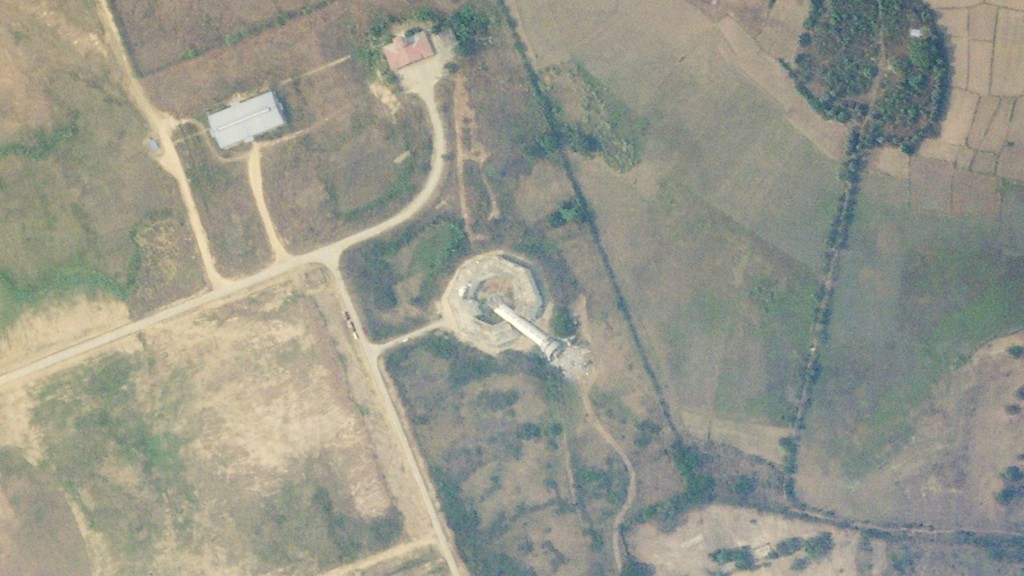 美联社取得周六拍摄的卫星图像,显示内比都国际机场的空中交通管制塔倒塌,仿佛从底座上掉下来一样,塔顶位置散落着碎片。这座塔管控缅甸首都内比都所有空中交通。