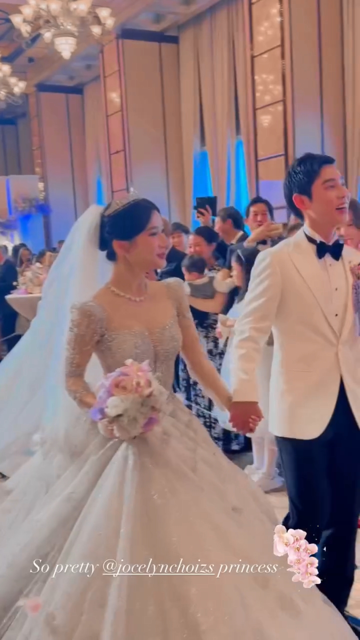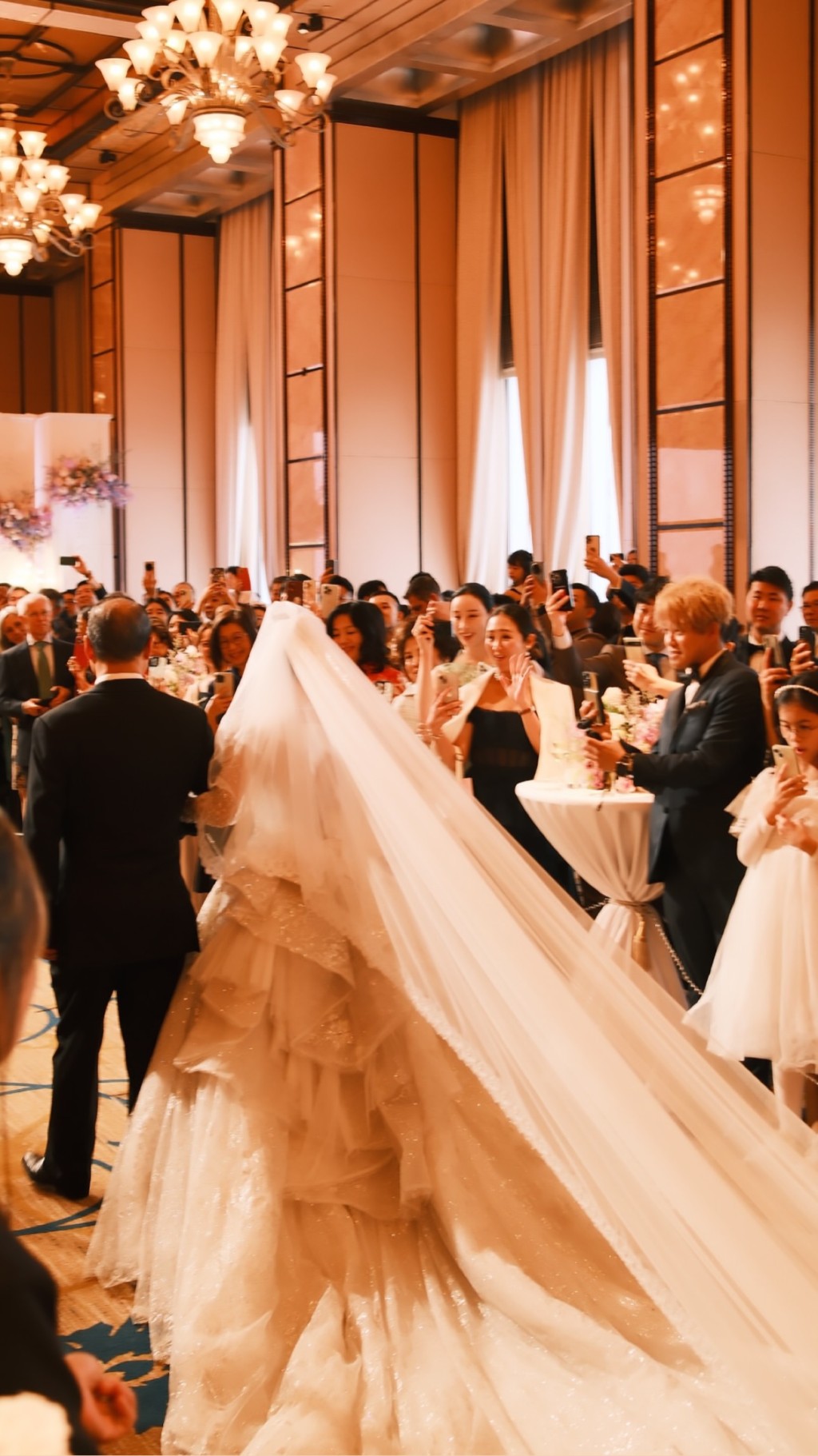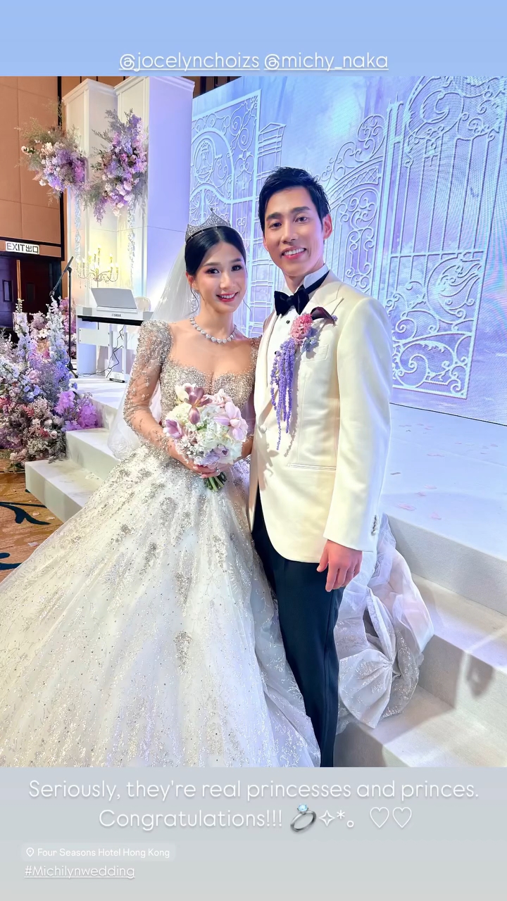 蔡颂思与日籍金融才俊老公的婚礼原来在前日(29日)举行,上午先进行接新娘及注册仪式,晚上在五星级酒店筳开廿多围。获邀出席的汪明荃在IG贴上多张相并说:“参加蔡冠琛先生太太嫁女婚宴,一对新人Jocelyn/Mikie,郎才女貌非常登对。恭祝一对新人甜蜜幸福,开开心心。恭喜蔡先生及太太新任外父外母。恭喜恭喜!”蔡颂思身上金器相当夸张,龙凤镯挂满身,头上又戴有金凤冠,颈上的金链比PIZZA还要大,果然富贵逼人。