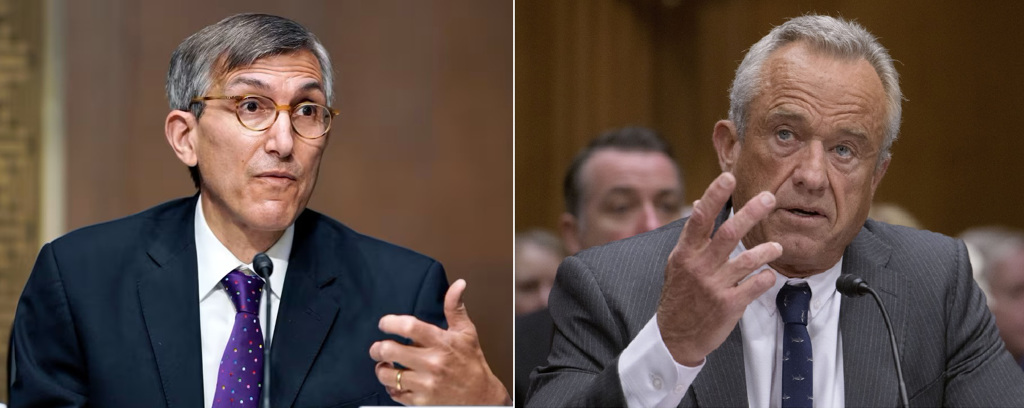 ▲美国FDA首席疫苗专家马克斯博士(左),因批评卫生部长肯尼迪(右),“持续散布对疫苗的错误、撒谎”,被迫自请辞职。美联社
