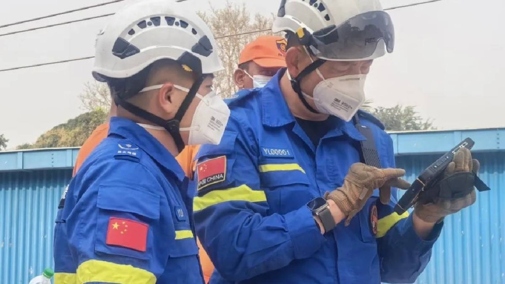 ▲岳麓蓝天救援队30日在曼德勒救出1名幸存者。 人民网