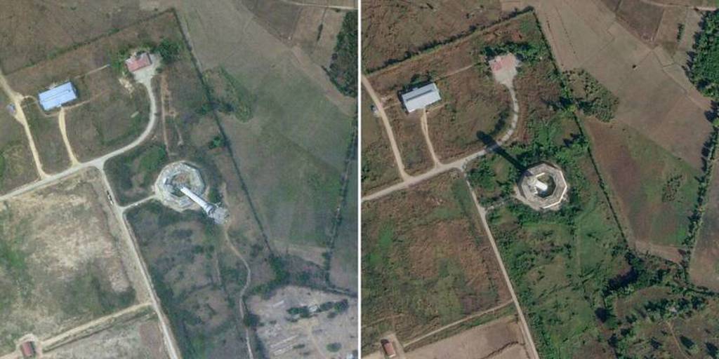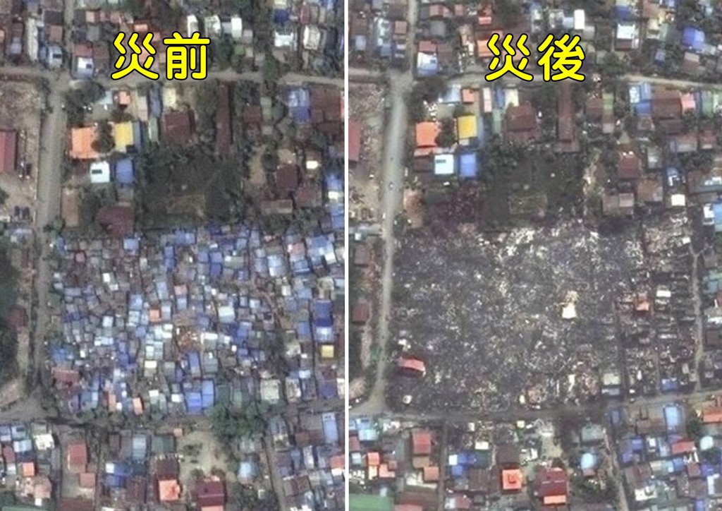 ▲地震前后对比卫星照片出炉,原本的建物都变成平地,威力惊人相当恐怖。美联社