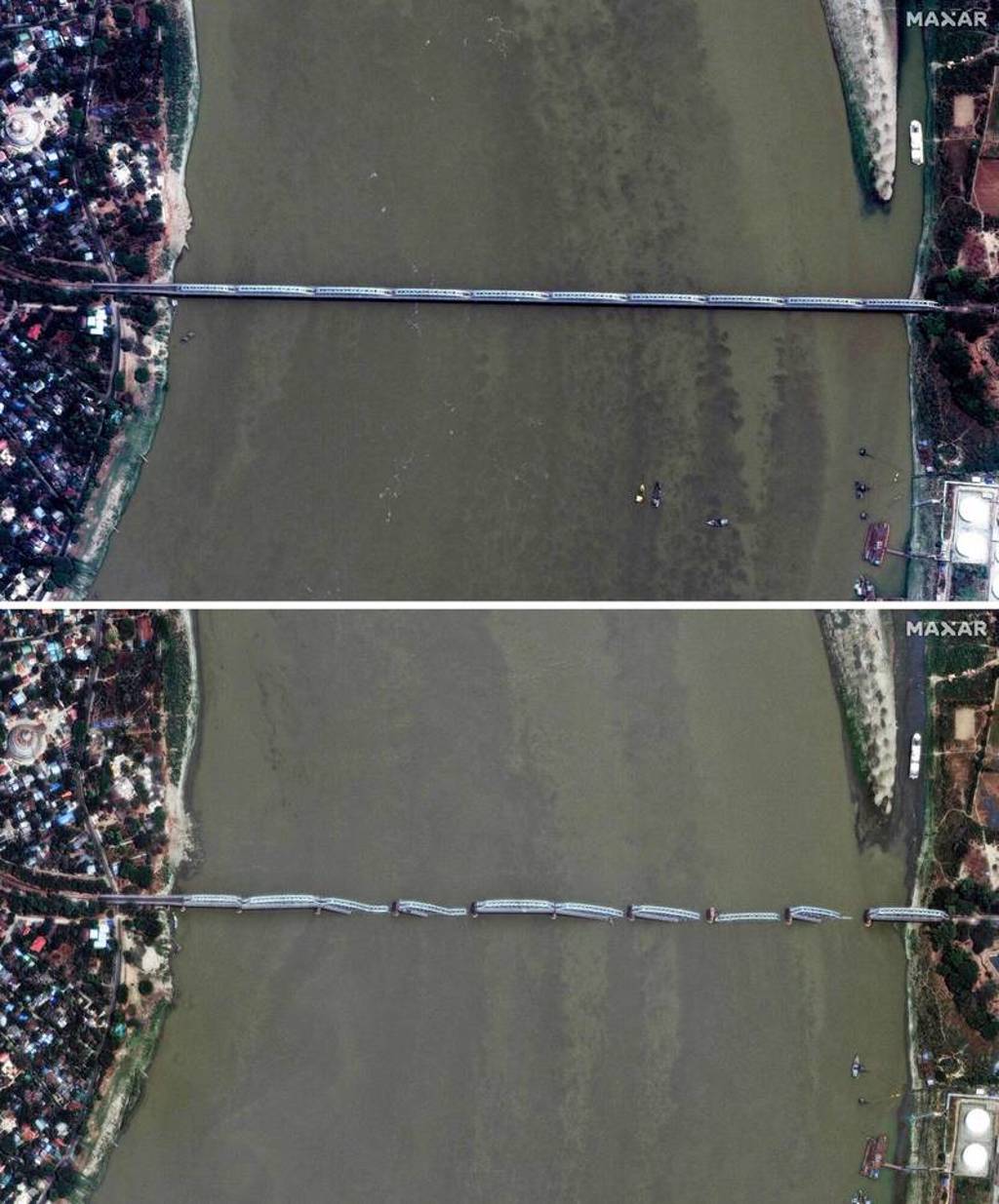 根据外媒报道,马萨尔科技的卫星影像涵盖了首都内比都、第二大城曼德勒以及震央附近的实皆等受创地区。 这些影像生动地对比了地震前与地震后的城市景观,包括断裂的桥梁、倾倒的建筑,可见地震带来的惊人破坏力。