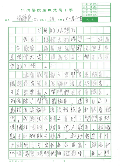 仁济医院罗陈楚思小学 杨静柔 6A《我的理想》