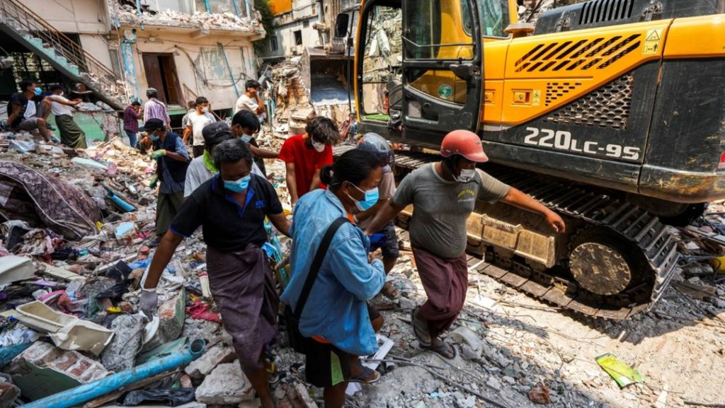 美联社形容,曼德勒街头弥漫遗体腐败的“死亡气味”,有当地人在摄氏41度高温环境徒手或用铲子搜救。