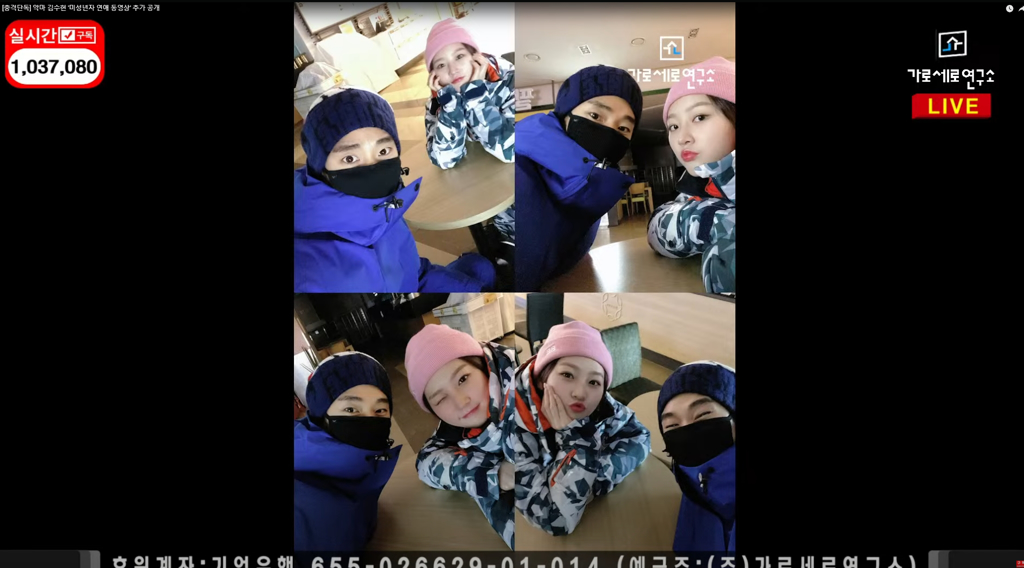 《横竖研究所》31日晚间开直播,公开多张金赛纶、金秀贤疑似滑雪场约会自拍照、金赛纶睡觉照片、KakaoTalk聊天记录,恋爱影片中金赛纶亲自下厨煮辣炒鸡给金秀贤吃等内容。