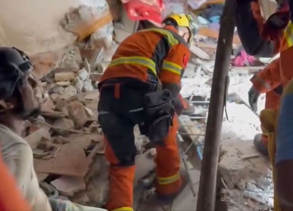 缅甸发生7.9级大地震,香港特区政府于3月29日派出51人救援队伍前往当地灾区,协助搜救工作。 至昨晚(31日)特区救援队在缅甸曼特勒灾区继续搜救,保安局于今日(4月1日)早上8时许,在社交媒体facebook专页更新救援队的最新救援进展,可见救援队在严重倒塌的建筑物瓦砾中,使用混凝土爆破工具和铁枝切割器开辟通道,以便救援行动。