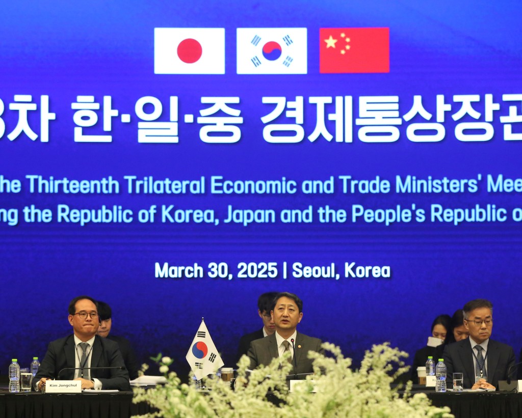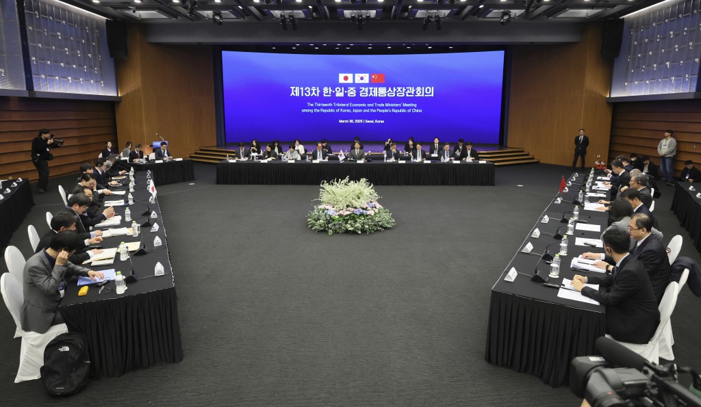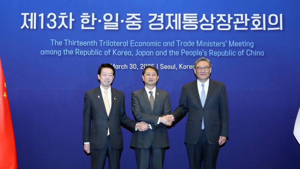 ▲第13次中日韩经贸部长会议3月30日在韩国首尔举行。 美联社