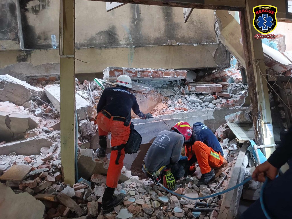 ▲缅甸大地震后,仍有大量失踪者被埋在瓦砾下待救。X@irrawaddymedia