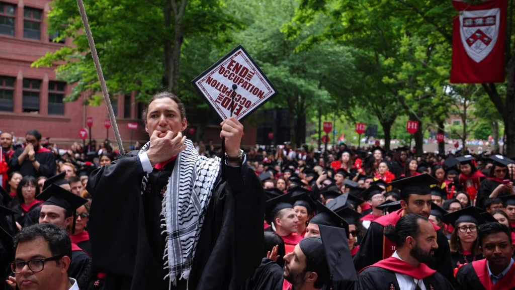 ▲2024年5月有哈佛学生在毕业礼上支持巴勒斯坦。 路透社