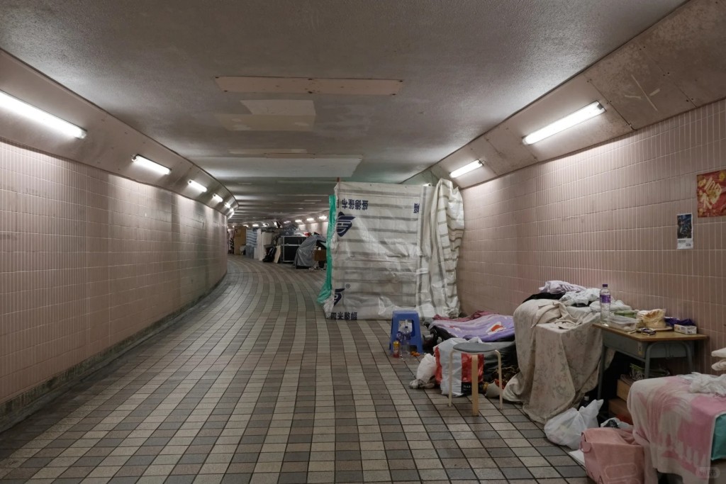 香港隧道露宿者“居所”自成一角 内地客感慨“住着讲究人”