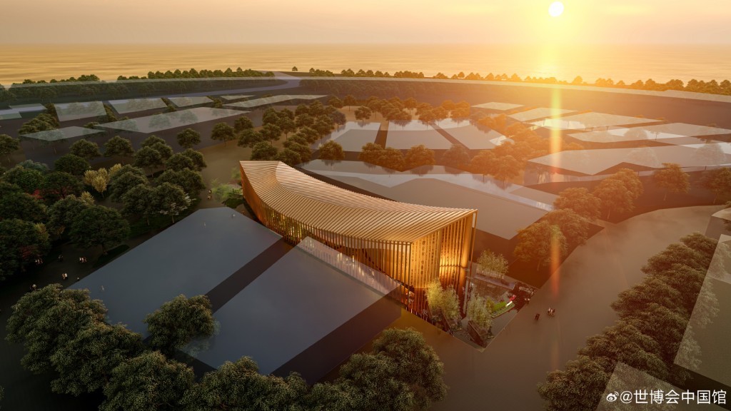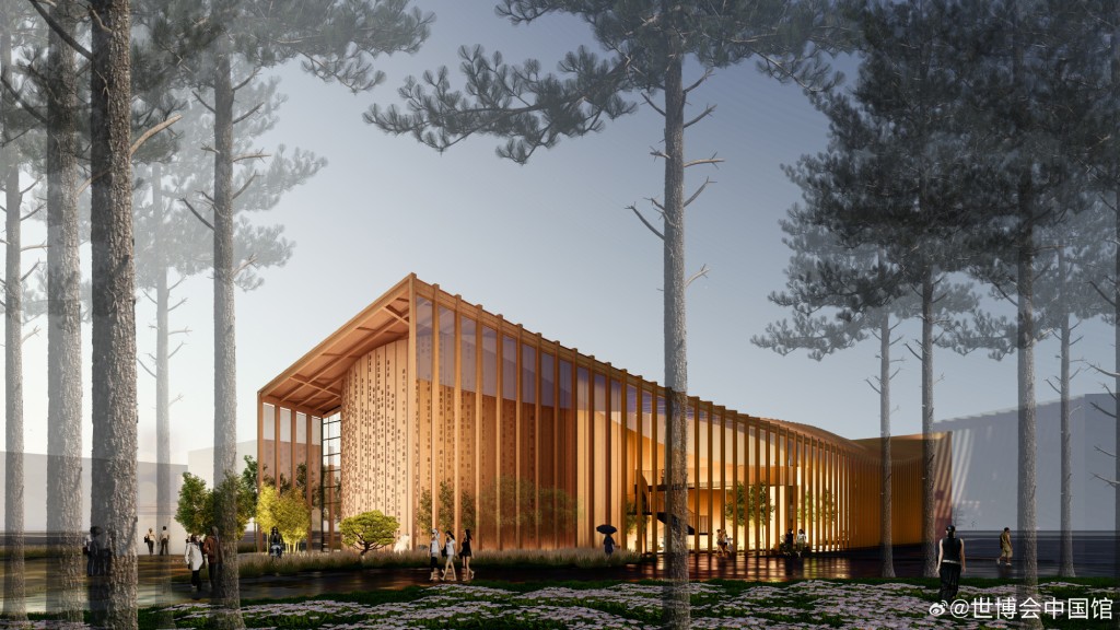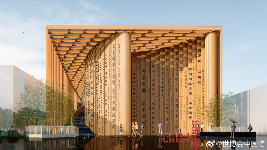 “中国馆取形于中国传统的书简长卷,是一座绵延展开的以中华书简为外观的竹黄色建筑,让观众一眼就能感受到强烈的中国元素和浓郁文化气息。”她表示,中国馆双曲面屋顶造型精巧,外立面竹简肌理温润华美,以金、篆、隶、行、楷5种字体镌刻119句汉字诗词名篇。
