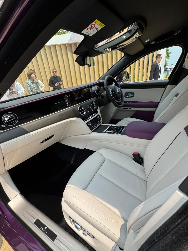 2025年款Ghost Extended Series II长阵版外形虽然没有惊天巨变,不过很多细节及线条都经过修改,例如内尖角头灯造型、鬼面罩应用新一代扁阔及发光“万神殿”设计,尾灯引用了同厂Spectre的立体LED光条格式。厂方指新车有多达4万4千种车身颜色可供选配,展示车配上名为Twilight Purple紫色外漆及人手绘上的Seashell米白色腰线。22吋轮圈也有全抛光或半抛光两种不同款式可供选择。车厢表板引用了如Cullinan Series II的横跨左右玻璃画廊理念,行针时钟内藏欢庆如神像,当然还有最新软件作业系统,支援Whisper手机应用程序。长阵版轴距延长了170mm,换来更阔落后排脚位空间。座椅也内置冷暖通风及按摩功能,后排也可选配影音娱乐独立触控屏幕组合。
