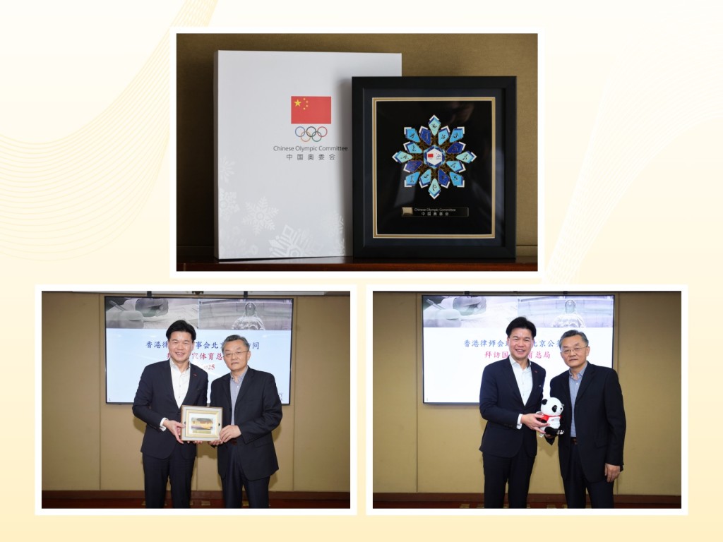 汤文龙、律师会副会长黄巧欣,及中联办法律部部长刘春华与国家体育总局副局长张家胜及政策法规司司长褚波进行高层会谈。张家胜表示,国家体育发展规范化的重要性,香港在这方面的丰富经验可以助力国家体育发展。律师会在国家体育总局亦就与体育制度化相关的议题进行了深入交流。