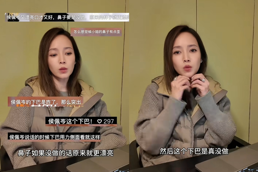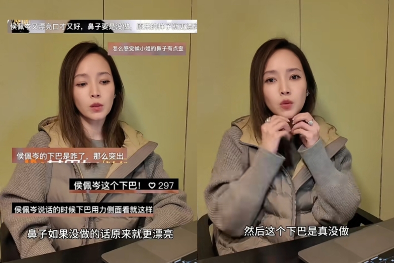 侯佩岑在小红书分享影片,有网友质疑:“侯佩岑又漂亮、口才又好,鼻子如果没做,原来就更漂亮了”、“还有下巴也做了”,侯佩岑无奈表示:“不是,如果我鼻子做的,还会这样子?一高一低、一大一小,还歪的吗?”