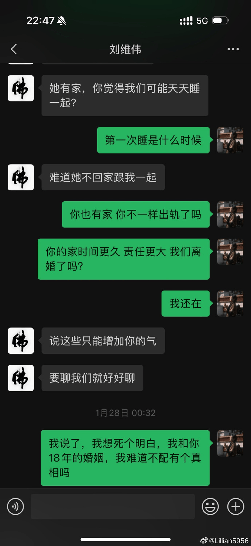今年1月16日,大女儿去青岛看刘维伟,发现房间有女士遮瑕膏,此后刘维伟当着女儿的面与辛女视讯“亲亲”,后来女儿告知李艳真相,李艳也得到了各方认证。