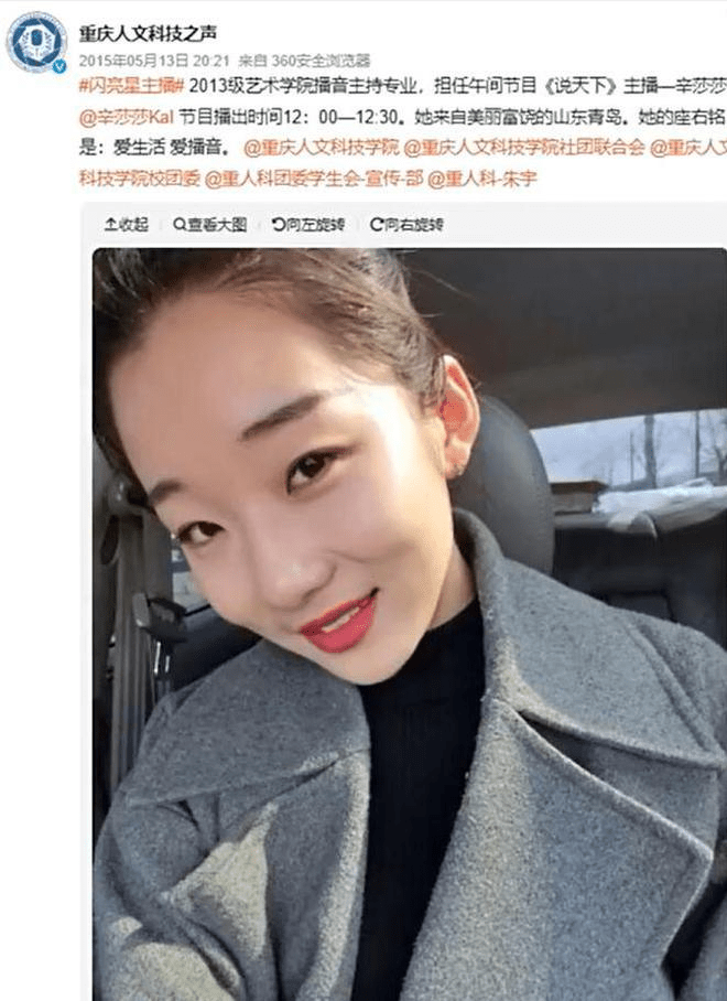 ▲小三身份曝光:播音主持、在青岛开养生馆的辛莎莎。
