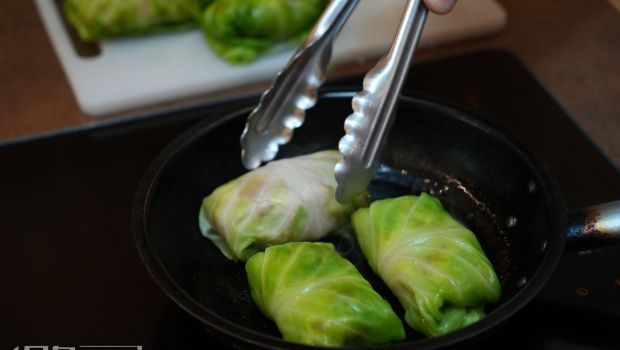 3.椰菜肉卷要先煎收口的一边,避免肉汁流失。