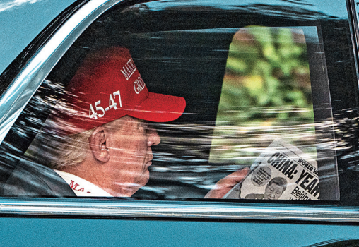 ▲总统特朗普5日抵达佛罗里达州特朗普国家高尔夫球俱乐部时,正在车上翻阅《纽约邮报》。 美联社