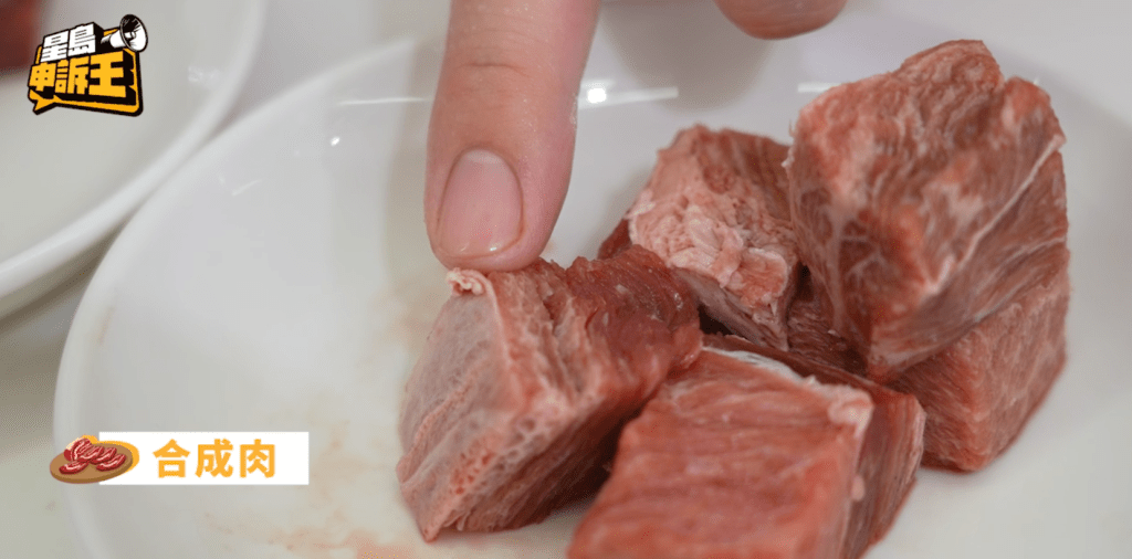 ▲资深采购专家Ivan表示,合成肉纹路比较不一。