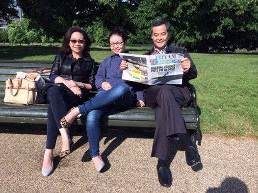 ▲2014年,梁振英上传了与梁齐昕在伦敦晨光下合照。相中,梁太唐青仪与梁齐昕对调鞋子,十分鬼马。
