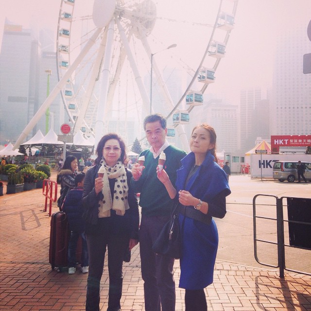▲2014年梁齐昕(右)上载了一家人在周日外出的合照。