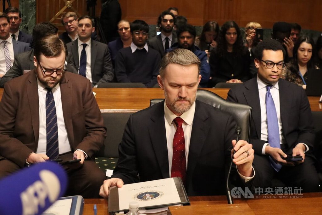 ▲美国对等关税使全球市场剧烈波动,贸易代表葛里尔(前排)出席参议院听证会。中央社