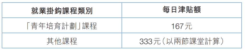 为期7天或以上的就业挂钩课程设有再培训津贴,津贴金额如下: