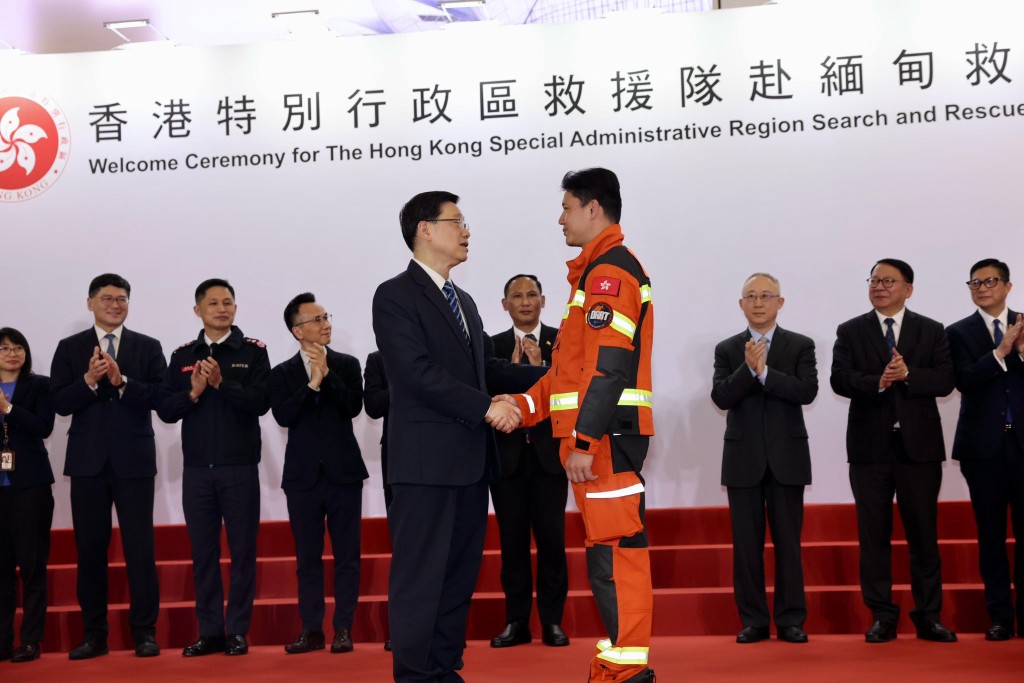 保安局政府保安事务主任黄国基表示,保安局在救援行动中负责整体协调及统筹工作。在地震后,保安局希望在短时间内将救援队员及救援物资送往当地,但因地震的关係,很多航班都受到显著影响,保安局果断安排包机将救援队送往缅甸,随即与相关部门及航空公司保持紧密联络。在缅甸驻港领使馆请求特区协助下,当晚已安排救援队安全抵达当地,令救援队成为其中一支最快到达当地的救援队伍。