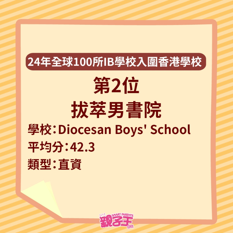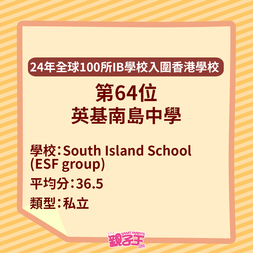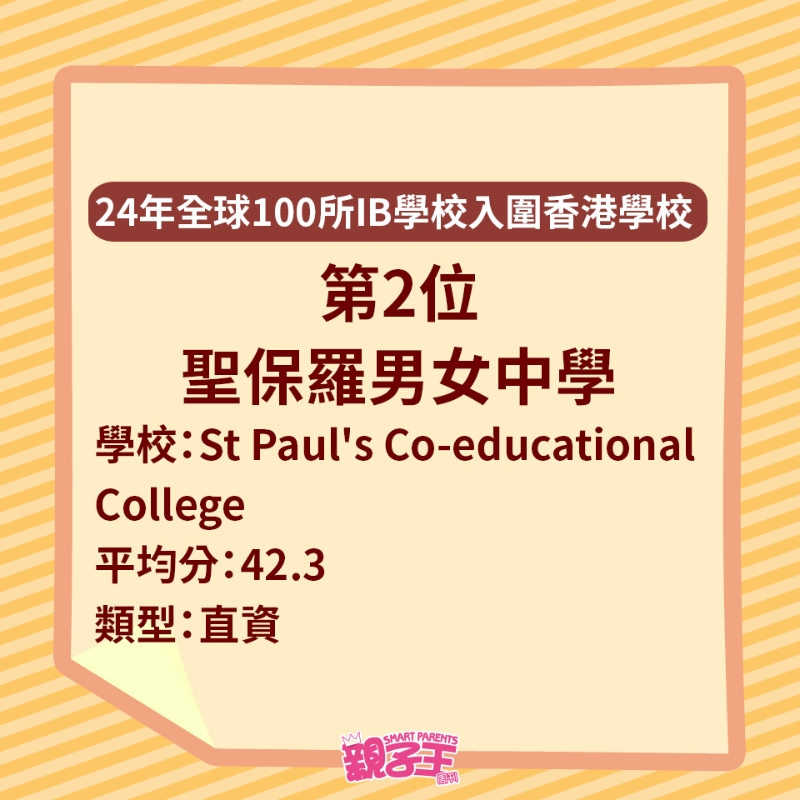 IB课程在全球发展日见成熟,不少香港本地家长为了方便孩子将来衔接海外升学,皆会选读行IB课程的国际学校,香港本地的IB课程于全球占有一席位,英国著名升学网站ib-schools.com依据全球修读IB学生在2024年5月的考试成绩(香港位于北半球,本地IBDP考生大多参与五月份的考试),整合出全球100所IB学校名单,香港共有21所学校入围,当中以拔萃男书院与圣保罗男女中学最彪炳,并列世界排名第二位、位居香港本地之首。