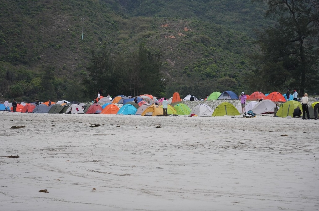 ▲西贡大浪西湾沙滩涌现大量帐篷,有如难民营。