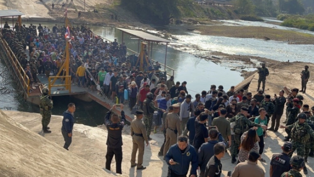 ▲今年2月,泰国大力打击泰缅边境上的诈骗集团,缅甸克伦邦一支民族军队12日释放260人,由泰国陆军负责接受这批人。泰国陆军图片