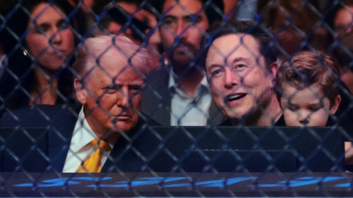 ▲特朗普(左)与马斯克观看MMA比赛。路透社