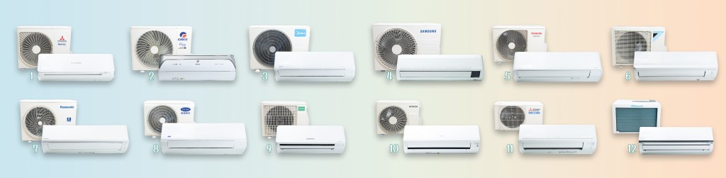 测试的12款“两匹”变频式分体机,其中5款 (#1至#5)为冷暖空调机,即同时具备冷气及暖气 功能,售价由9,980元至20,580元;其余7款(#6至 #12)为净冷型冷气机,售价由9,888元至12,840元。 部分型号的售价已包括基本安装。12款 样本声称的制冷量由5.000千瓦(kW)至5.310千 瓦,而当中5款冷暖空调机样本声称的供暖量则由 5.334千瓦至6.000千瓦。