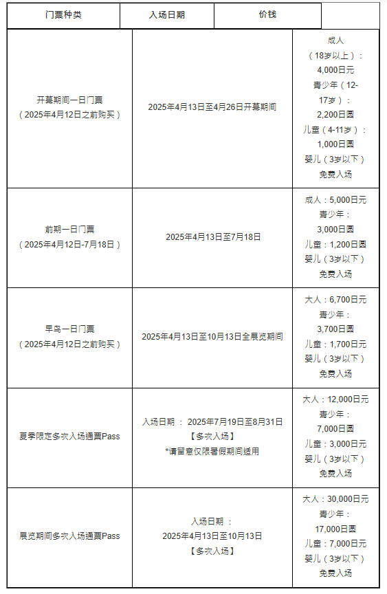 2025大阪世博门票种类及价钱