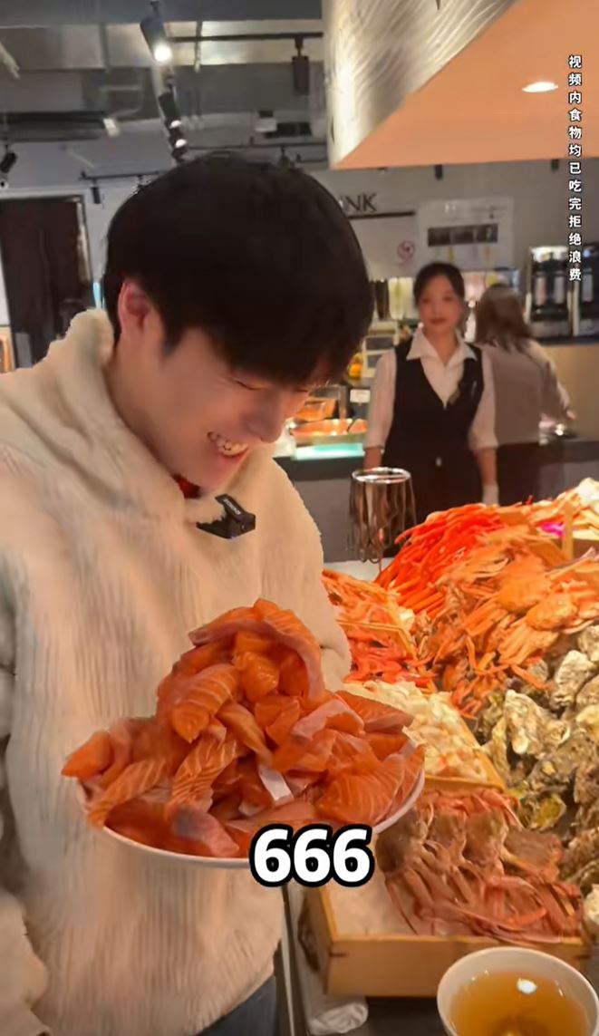 ▲邓炫疯在日本一放题餐厅用餐。抖音@邓炫疯