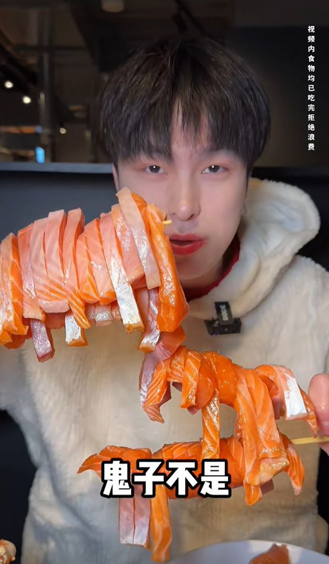 抖音上有不少人拍“吃货”片,亦有人利用民族情绪拍片。近日,内地一名拥有430万粉丝的大胃网红邓炫疯,到日本一家放题店用餐,期间故意将三文鱼、和牛、帝皇蟹脚等食材几近吃光,声言要让“鬼子”(日本人)吃不同。虽然影片博取35万点击,但并非获得所有网民支持。