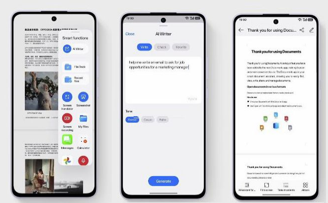 ▲Reno13 F既可进行屏幕翻译,亦能修正文件内容及生成摘要。