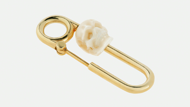 ▲A Vanitas系列黄金珍珠别针耳环,附珍珠手雕骷髅头。