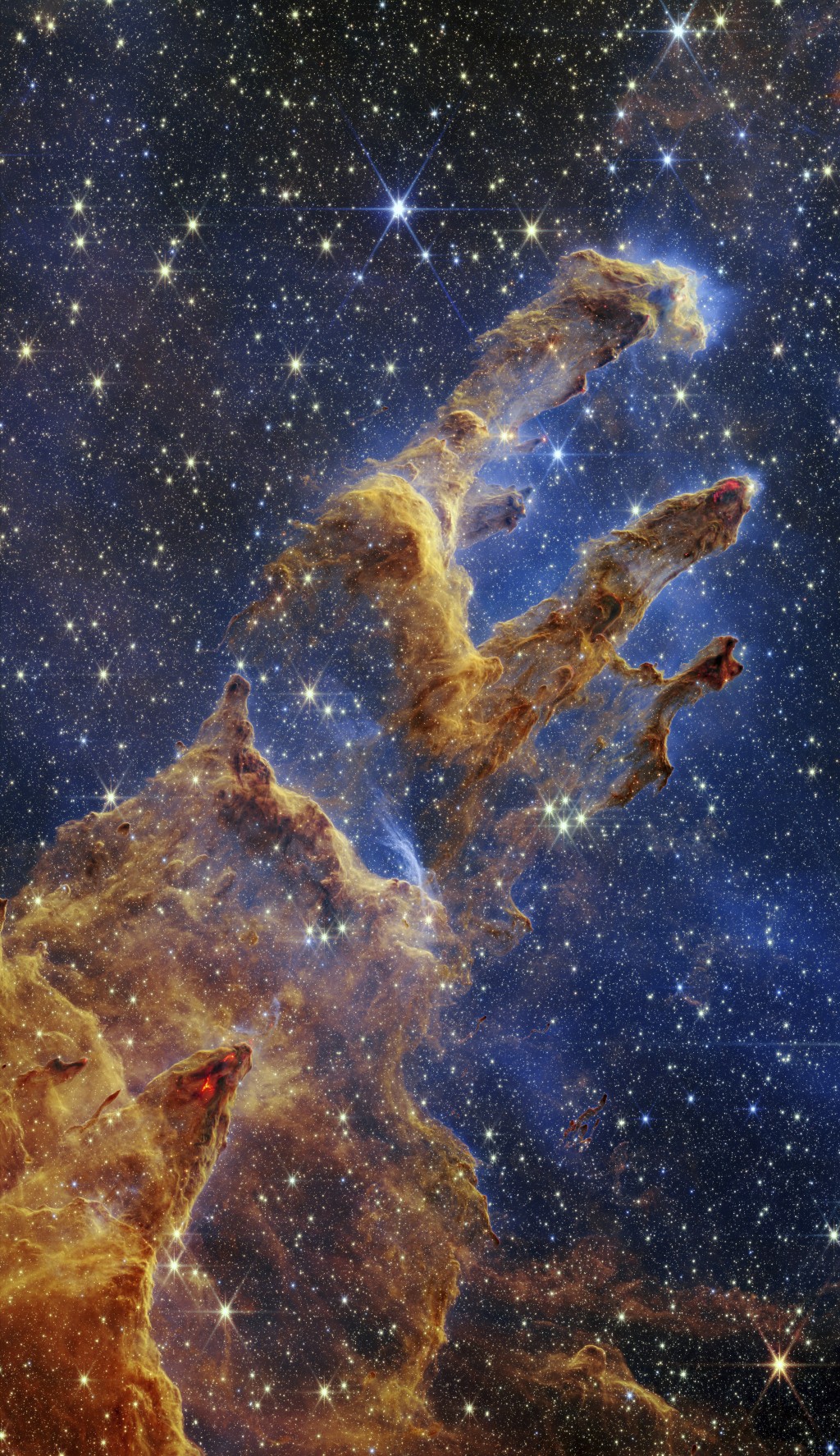 ▲韦伯太空望远镜拍下著名“创生之柱”高度精细新影像。AP