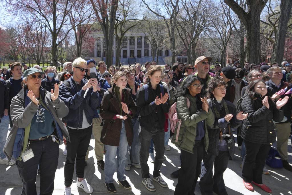 ▲哈佛学生、校友及教职员在校园集会,不满特朗普政府干预学术自由。 美联社
