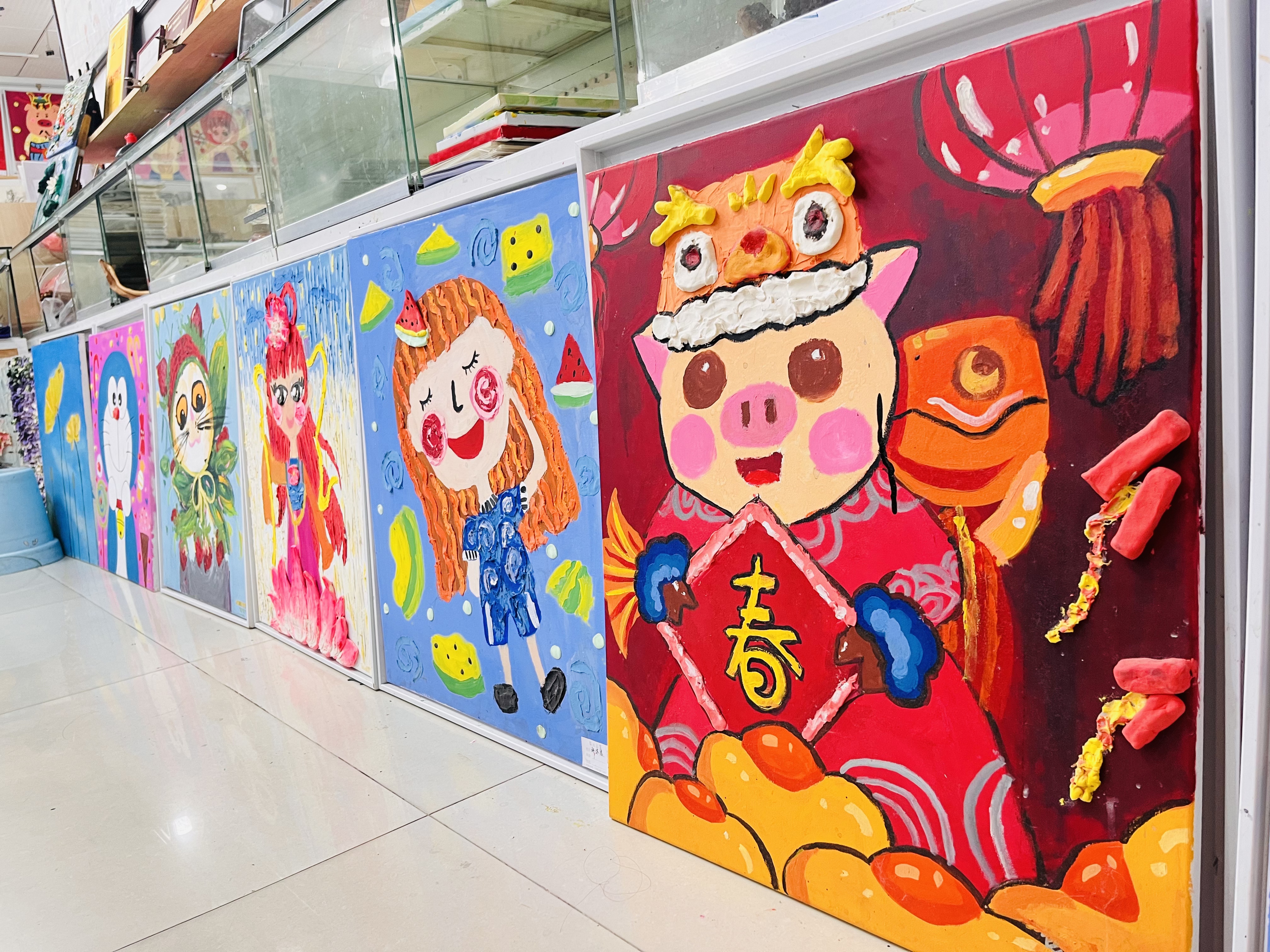 ▲在画室里,摆放着许多孩子们捏出来的泥塑作品。