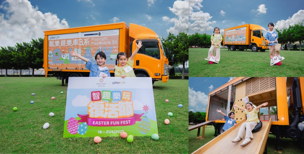 今个复活节长假期,这架设有滑梯及小阁楼玩乐区的“智乐游乐车”将驶至黄金海岸,把“到处走、到处玩”的游戏概念推广至屯门区,举办以创造自由游戏为主题的“智趣乐玩复活节”。活动将结合复活节元素及灵活多变的大自然相关材料,于超过五万平方呎的大草坪打造成10个好玩有趣的游戏体验区,小朋友可化身成“复活兔”尽情放电之余,也能从玩乐中激发创造力,培养解决问题能力!
