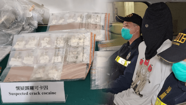 海关昨日(17日)于大埔进行反毒品行动,其间截查一名可疑男子,并在其斜孭袋内搜出570克霹雳可卡因,随即上前拘捕。人员押送该名男子到一村屋单位搜查,再检获560克疑可卡因、约30克疑霹雳可卡因,以及一批制毒及毒品包装工具,市值约120万元。